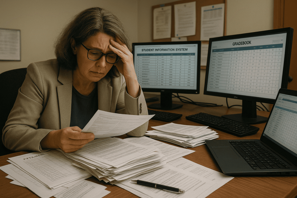 Teachers waste time on manual tasks, administrators deal with unconnected data, and students don’t get a unified learning experience.